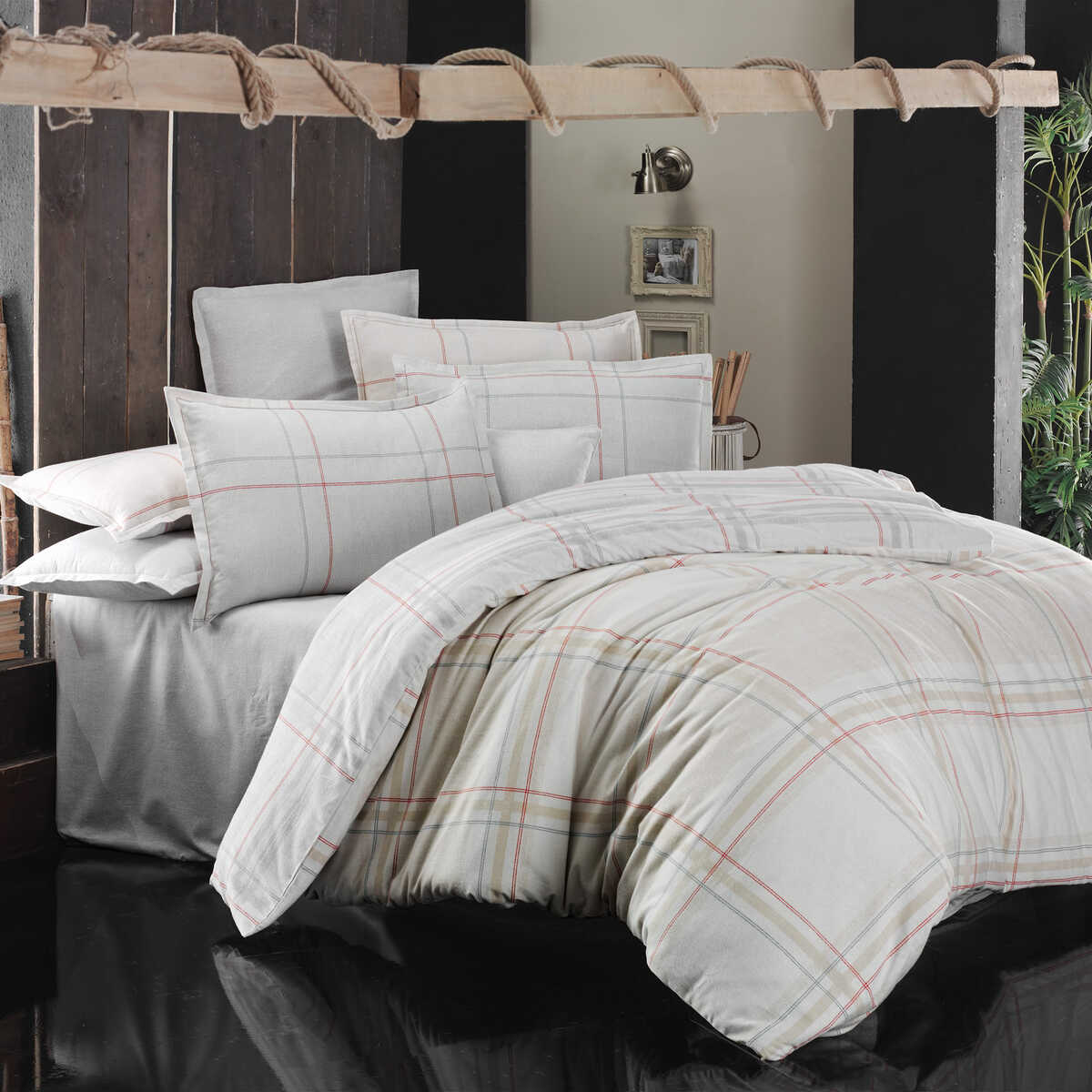 Set lenjerie de pat dublu, Helge, Sarev, Bumbac Flanel, 4 pıese