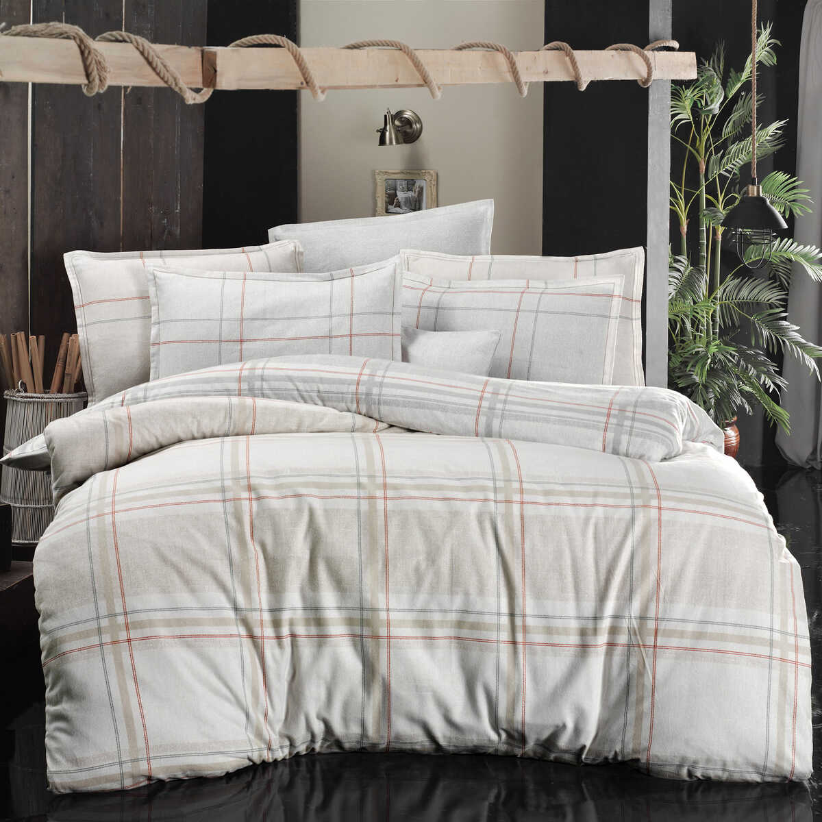 Set lenjerie de pat dublu Ranıa, Sarev, Bumbac flanel, 4 pıese