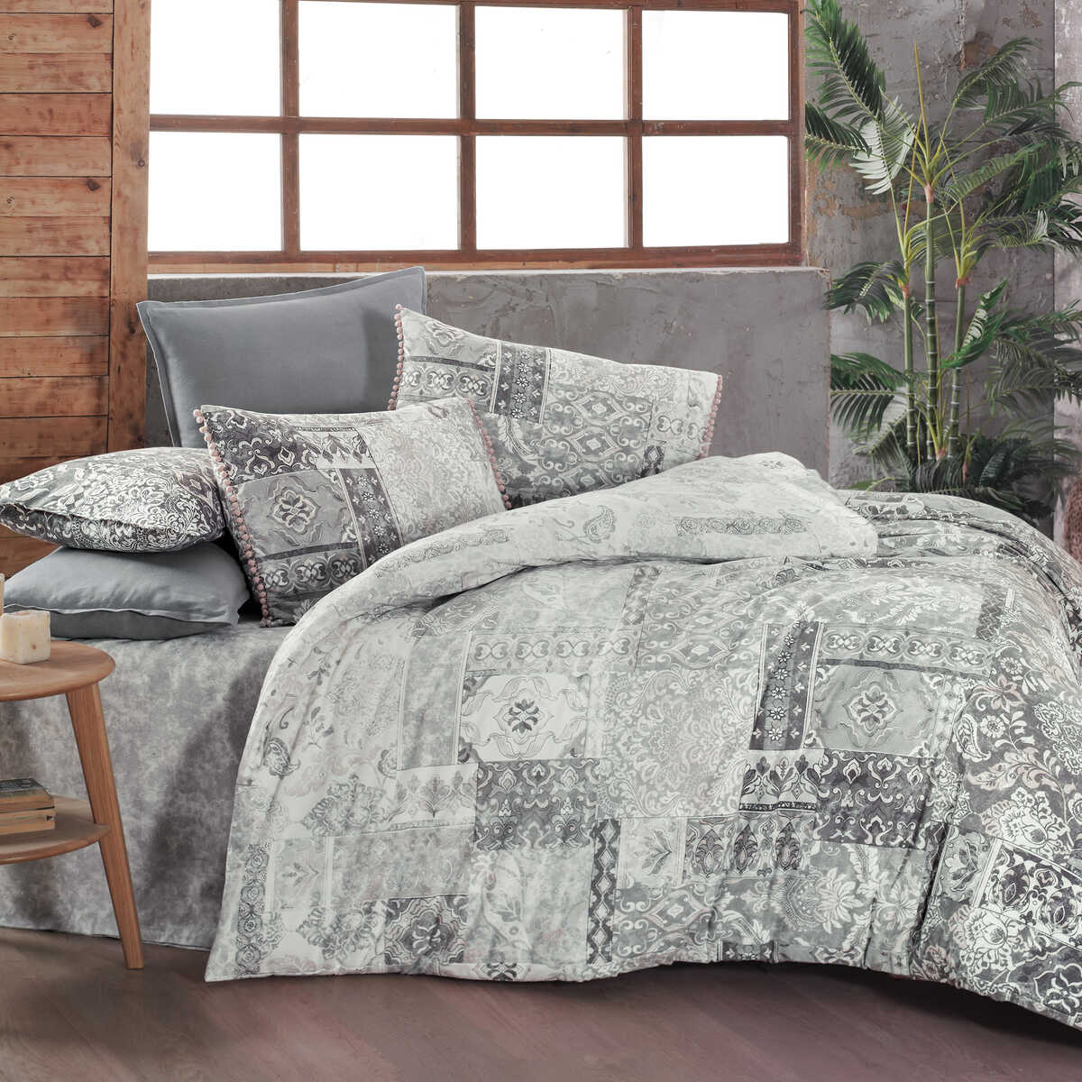 Set lenjerie de pat dublu, Yousa, Sarev, Bumbac Flanel, 4 piese